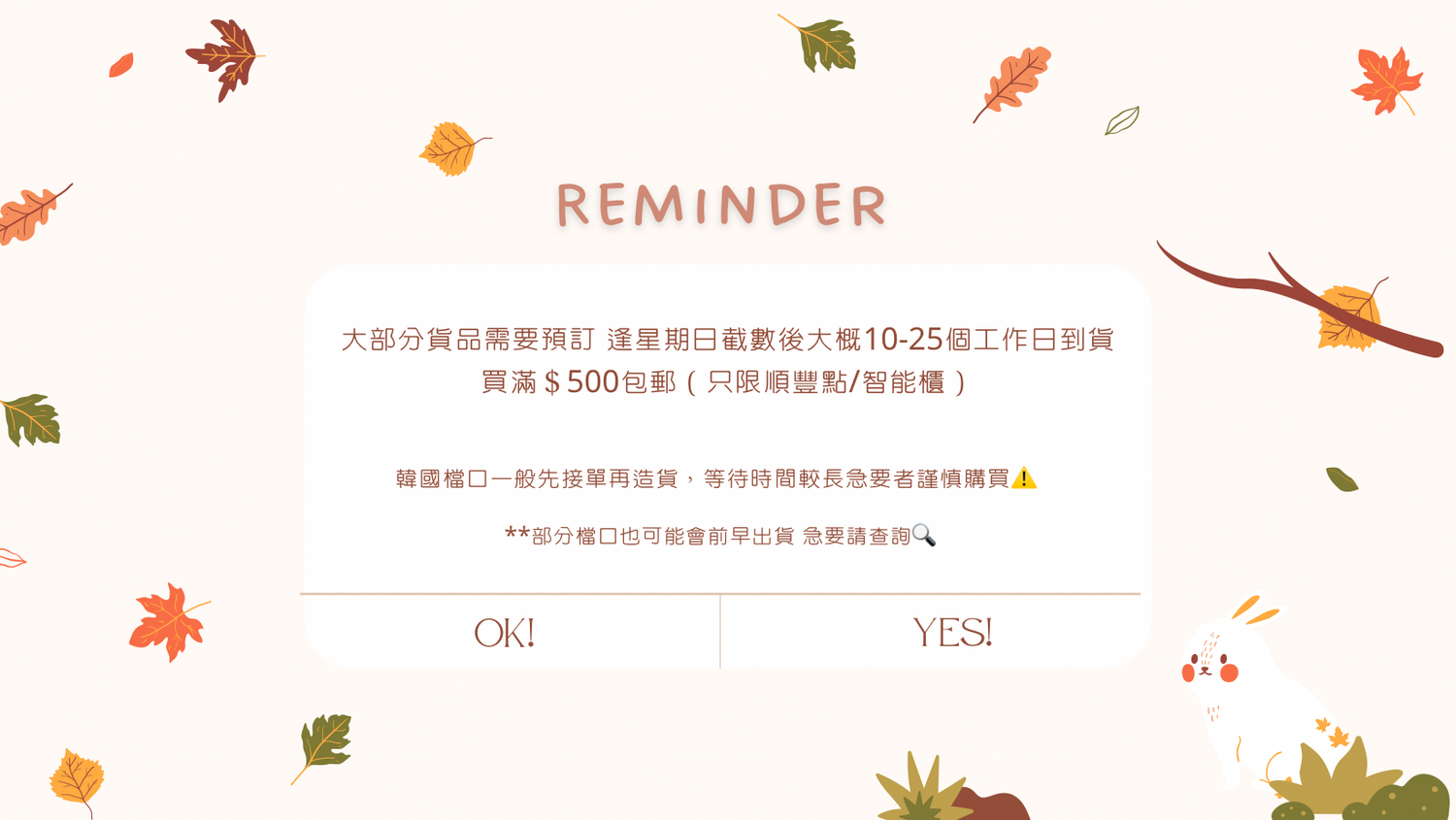 香港單次消費滿三件包郵 / 澳門單件包郵