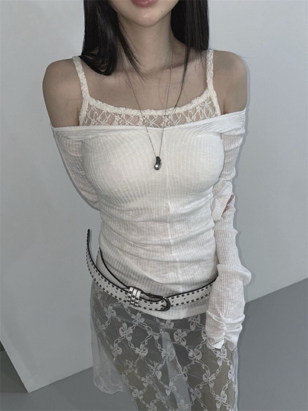 【甜欲風⚡️】蕾絲背心+長袖罩衫Set