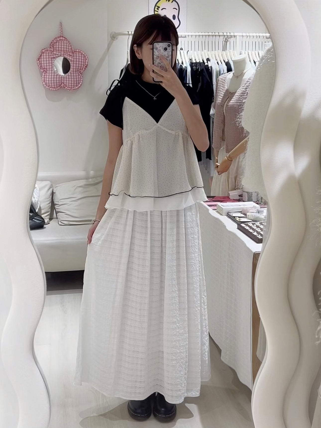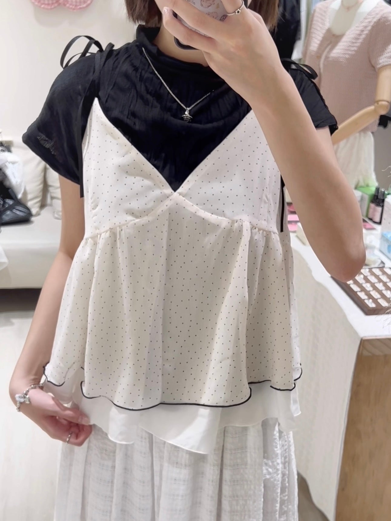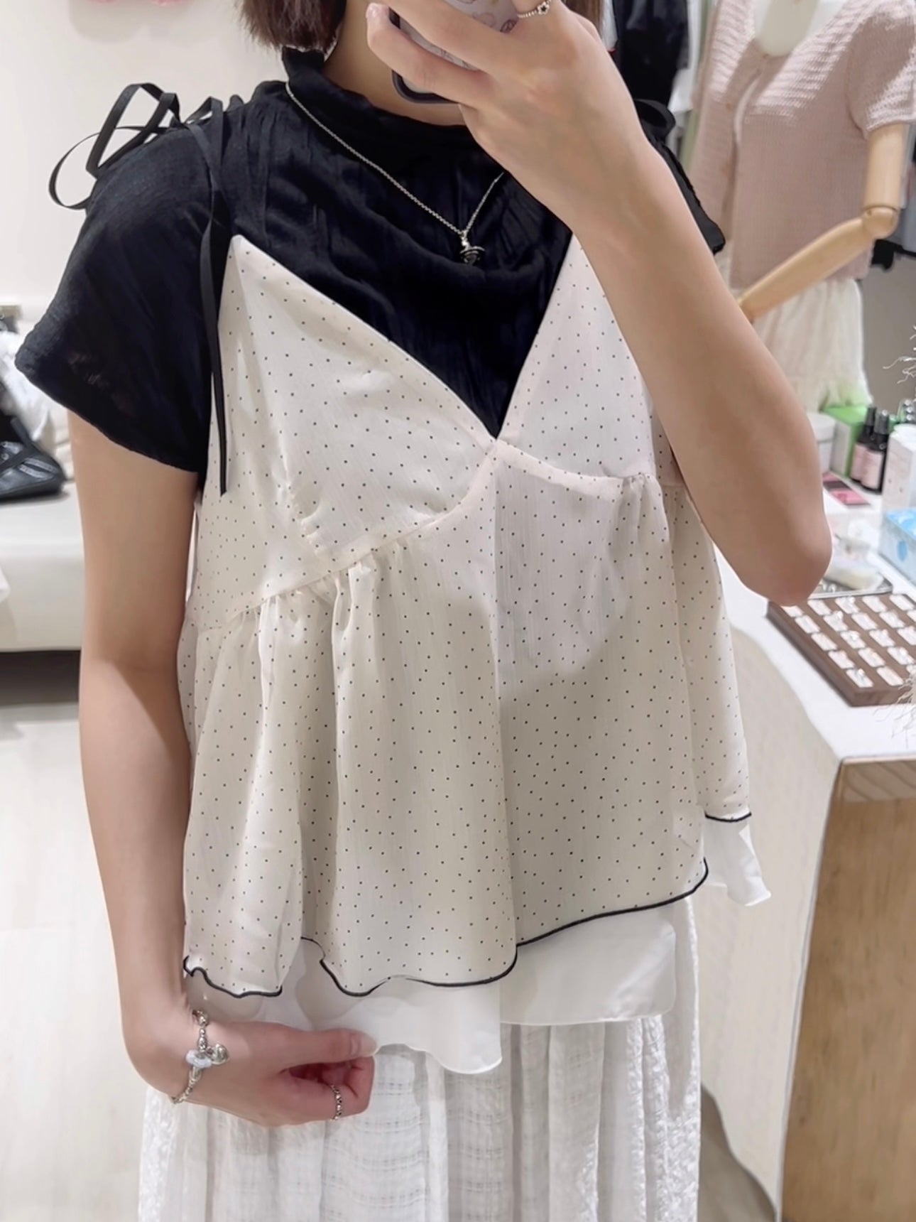 皺皺短Tee+波點層次感背心