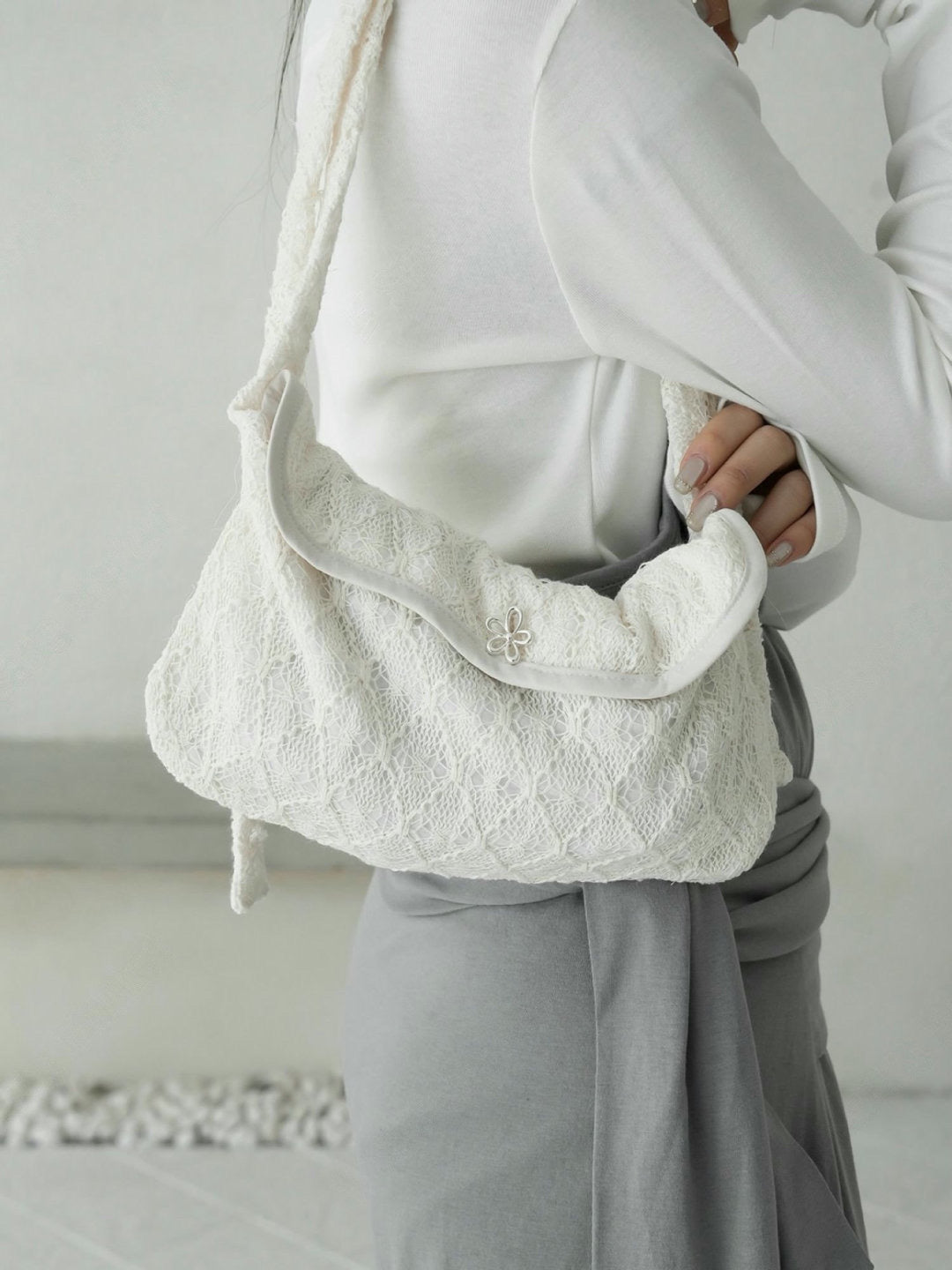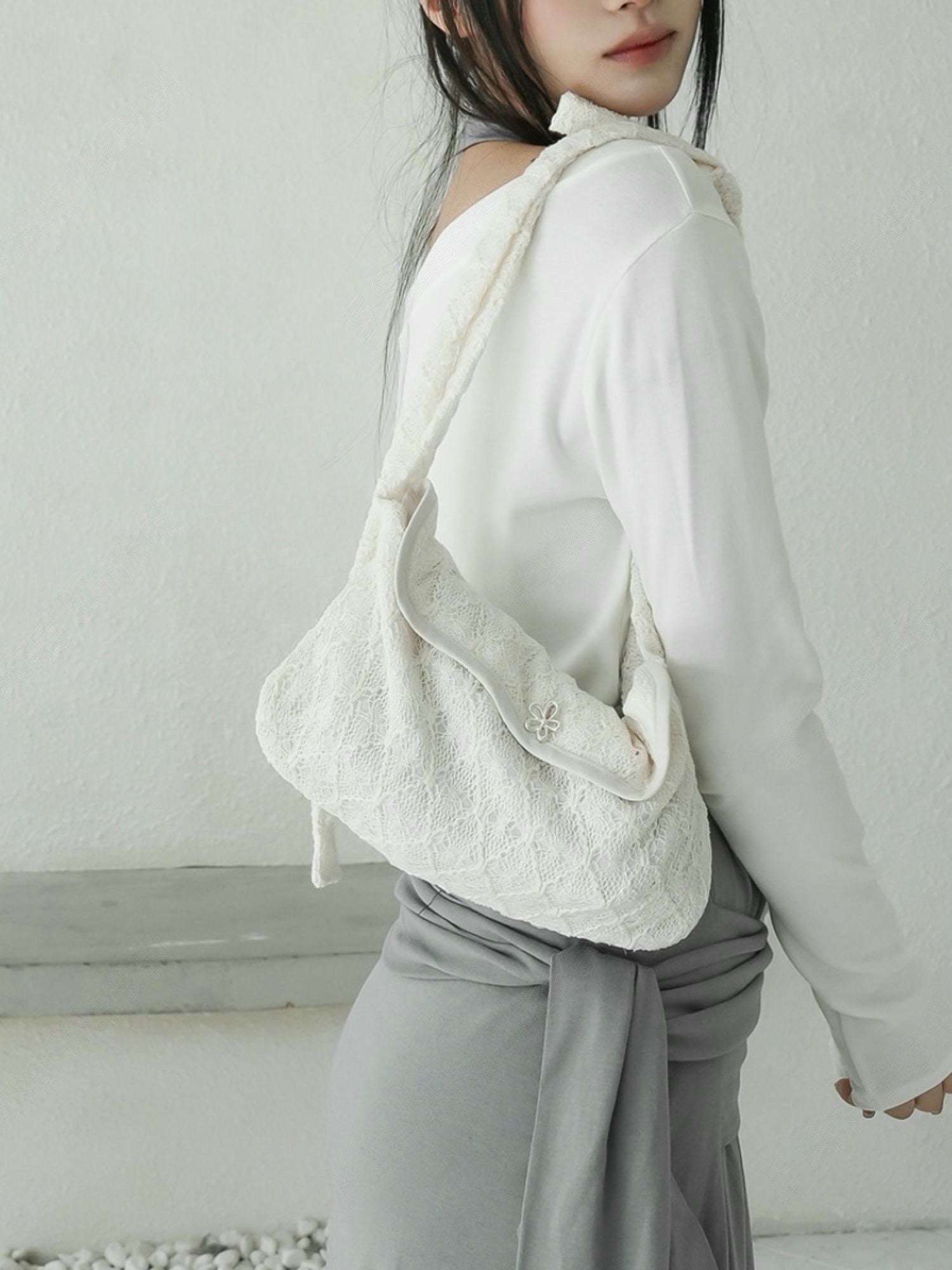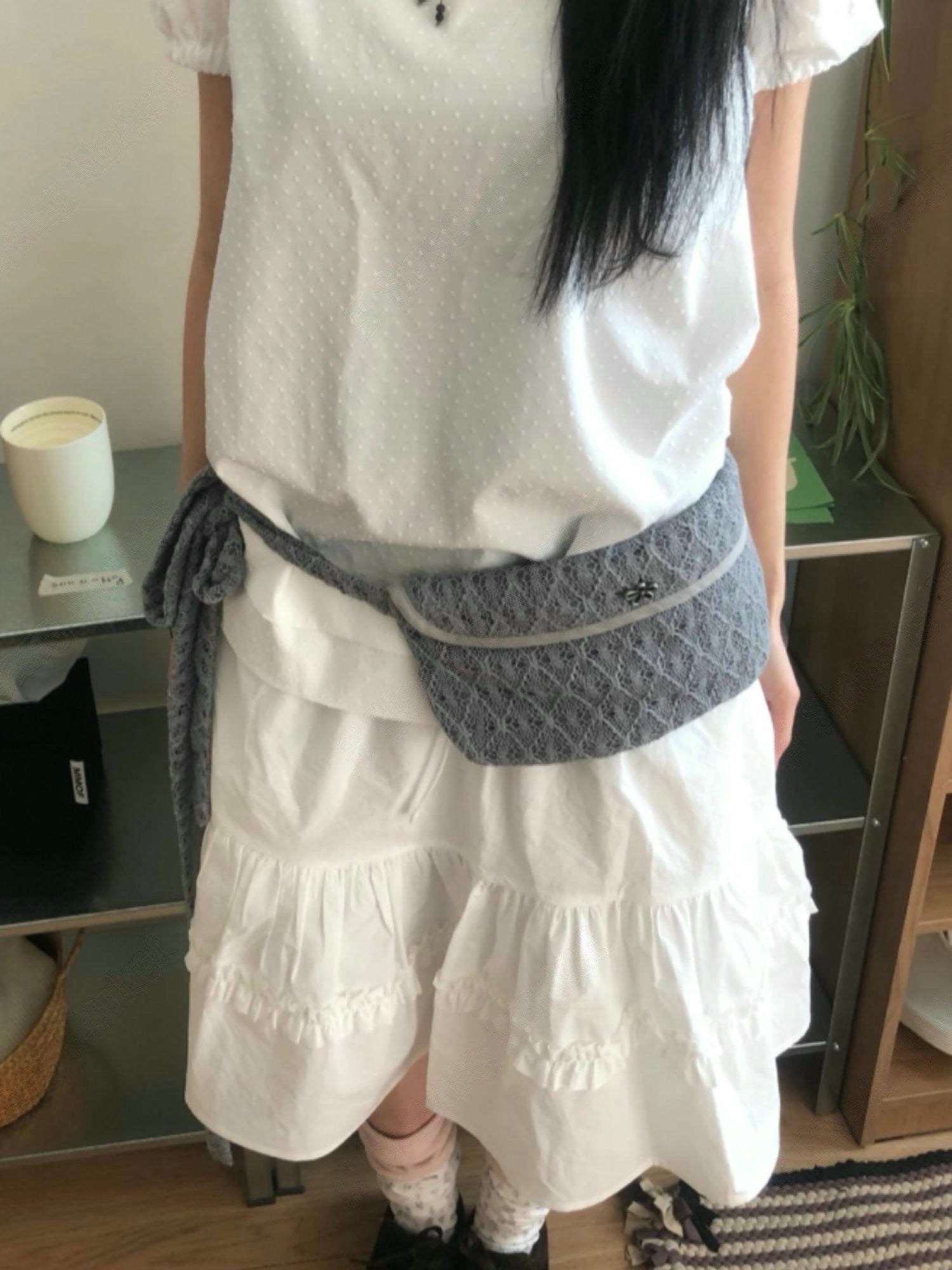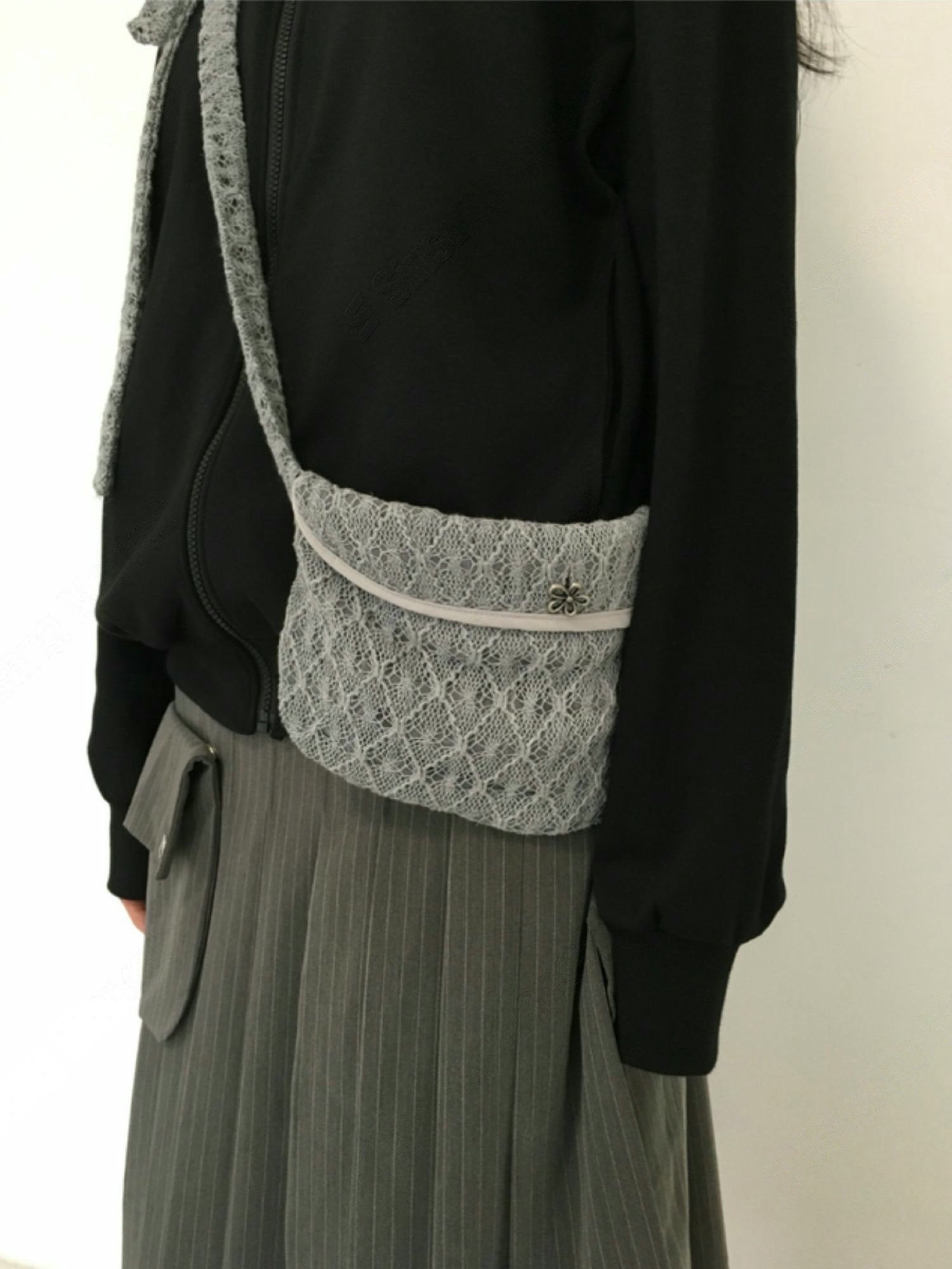 長度可調整!蕾絲花花扣袋仔