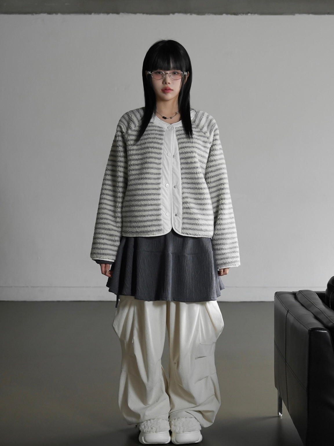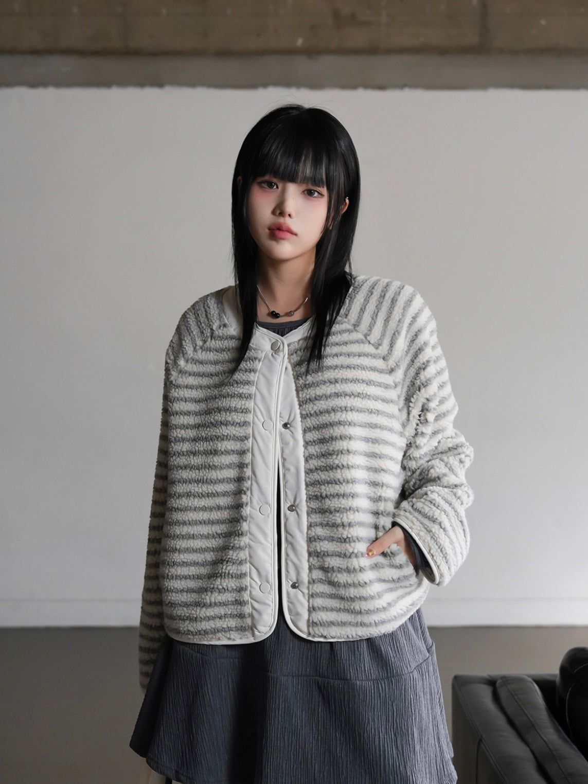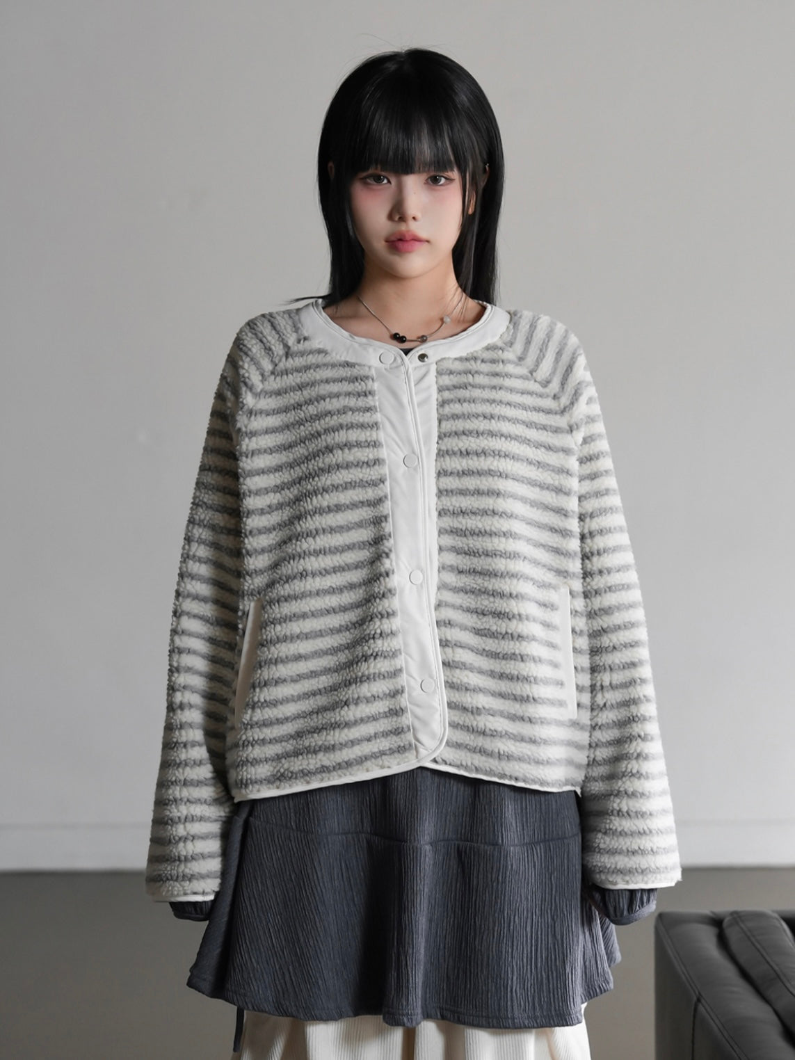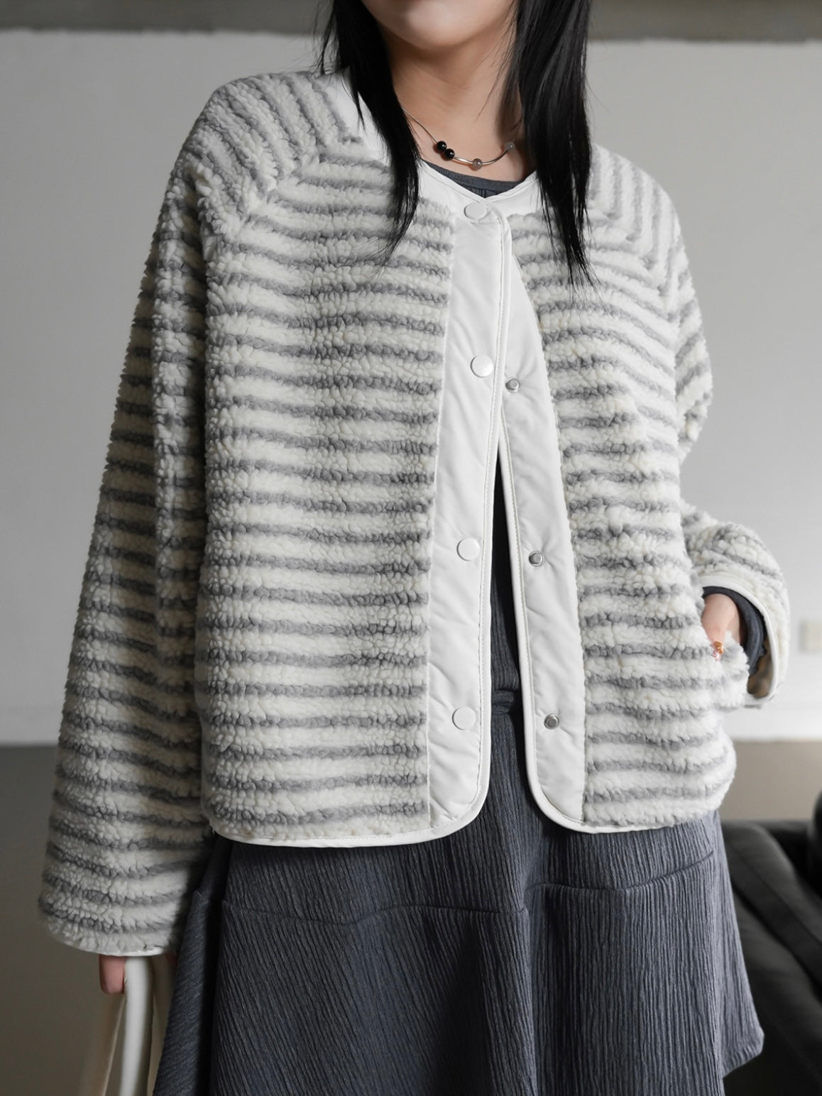 【一衣兩穿♡︎】羊羔毛間條雙面外套