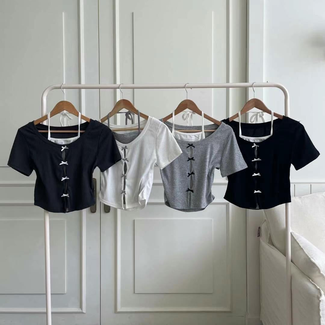 假兩件掛頸蝴蝶結tee+短裙