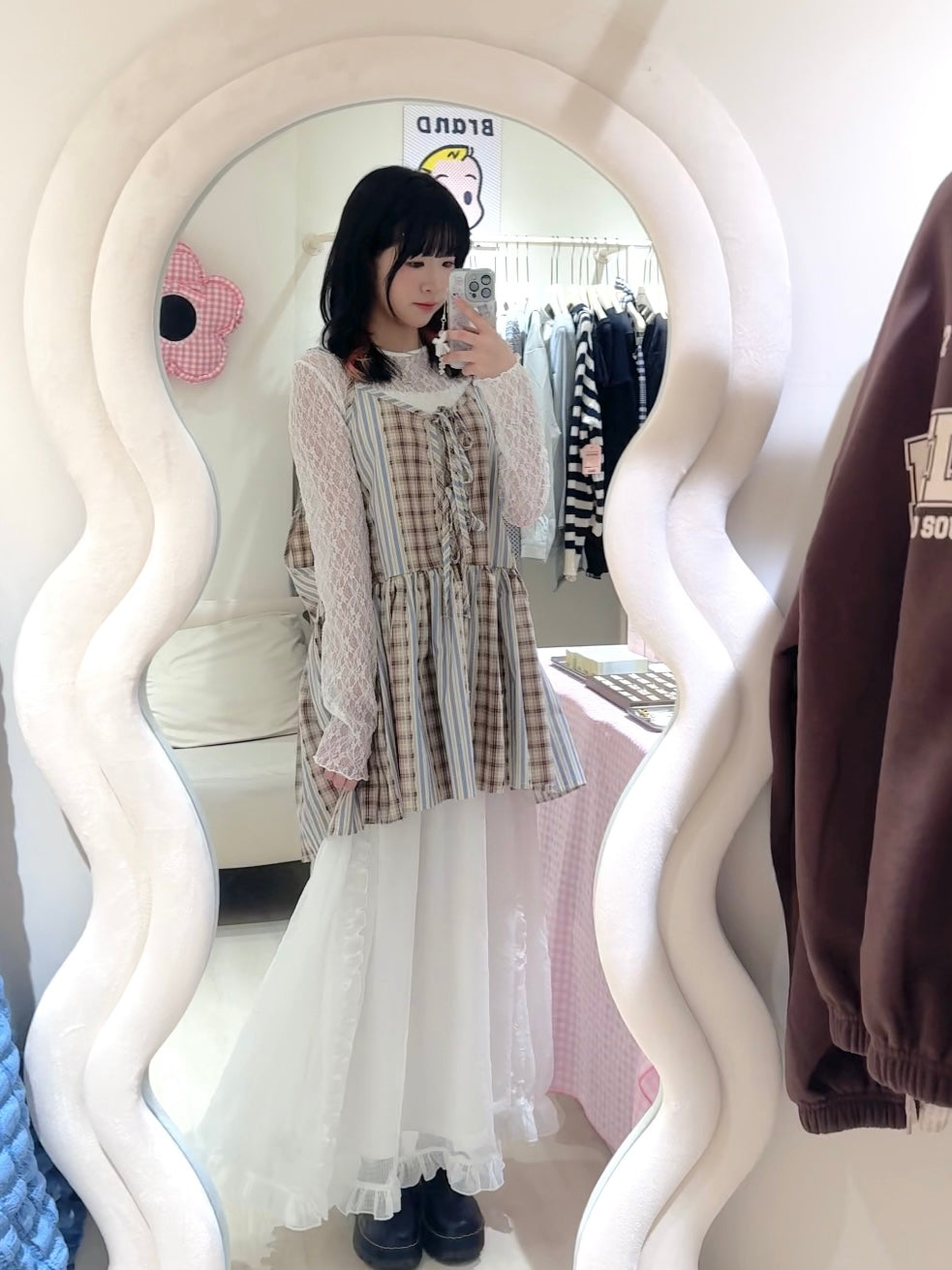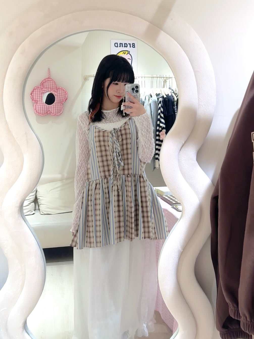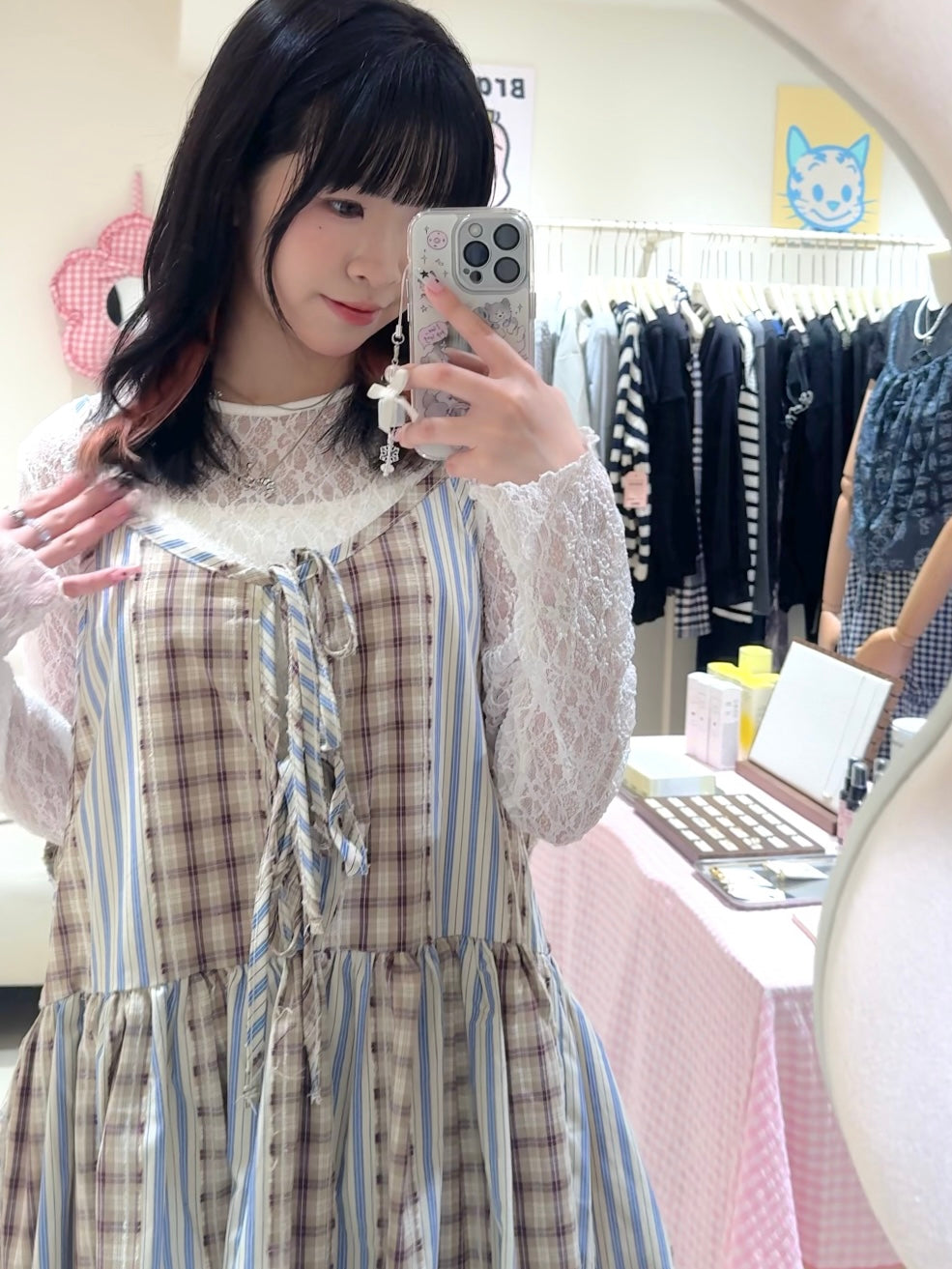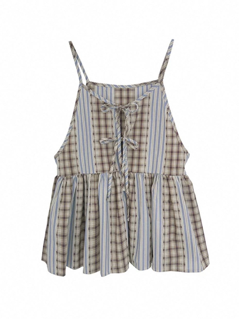 娃娃裝下擺格紋綁帶背心