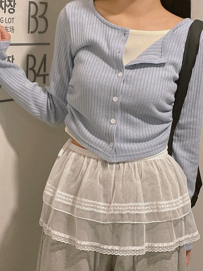 窩夫格假兩件開衫