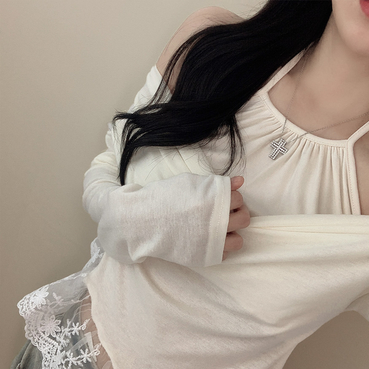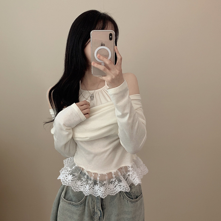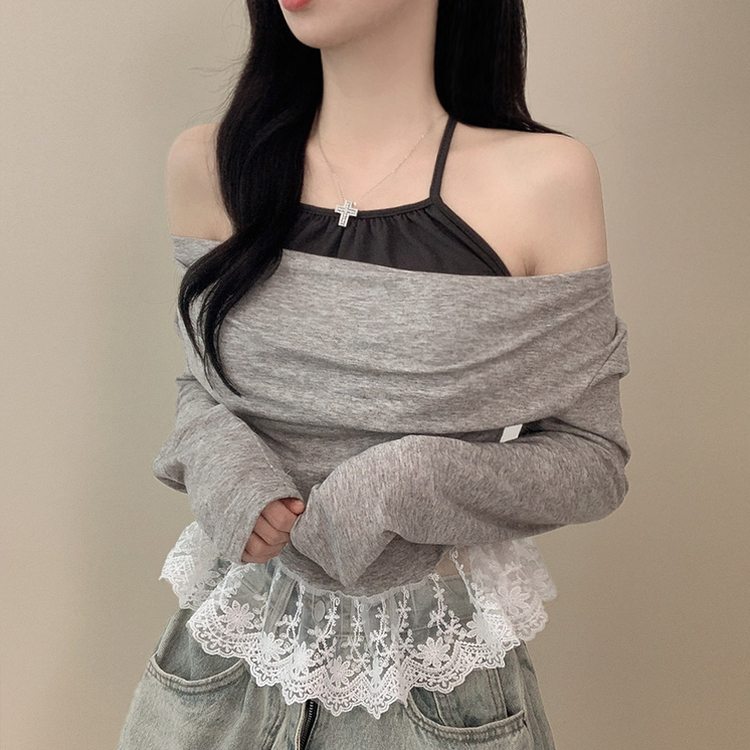 蕾絲層疊掛頸長tee