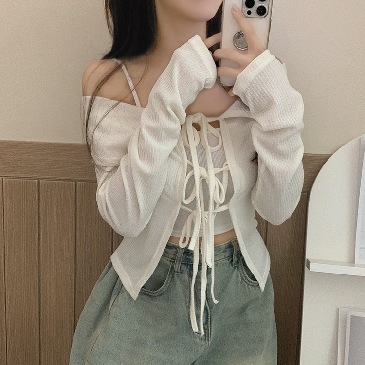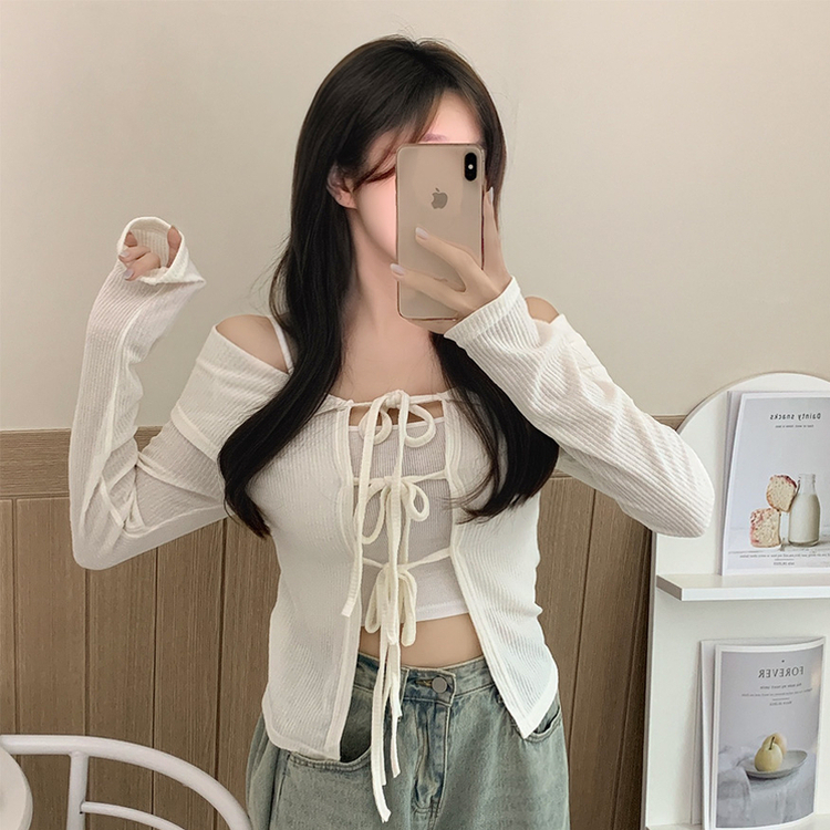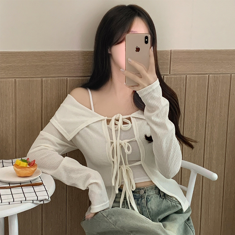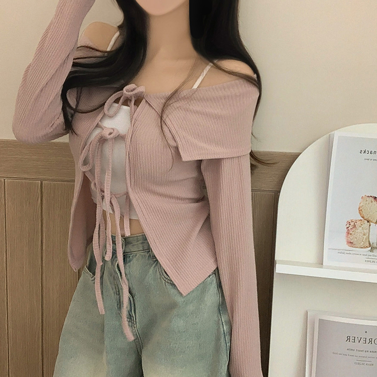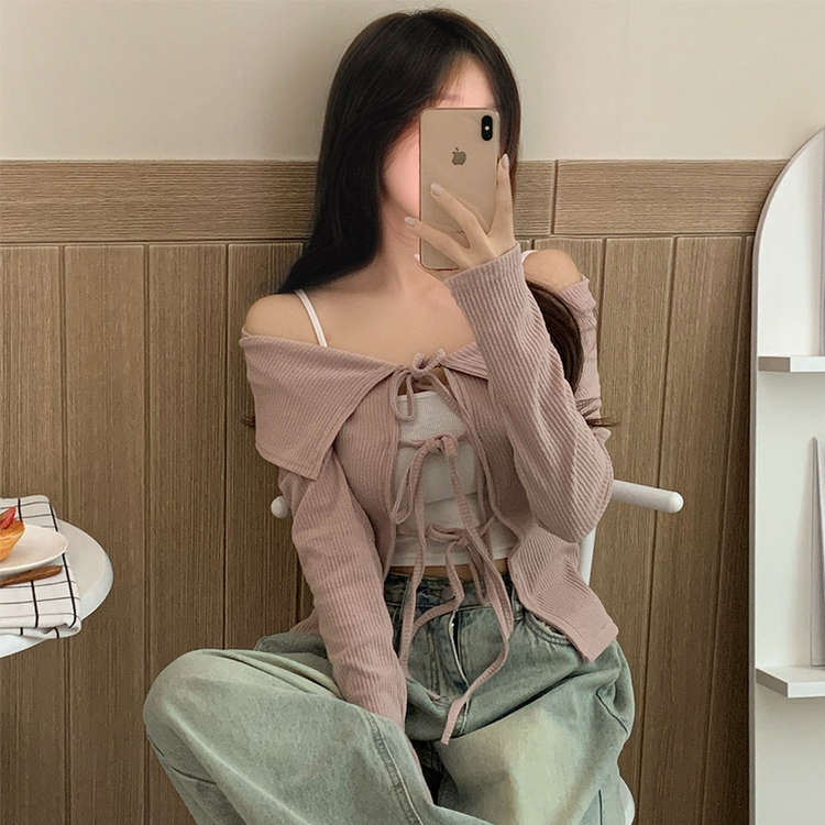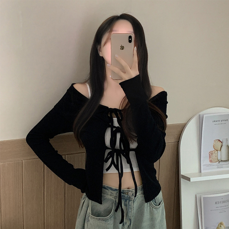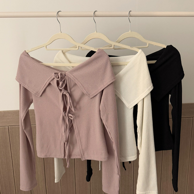 蝴蝶結翻領露肩開衫